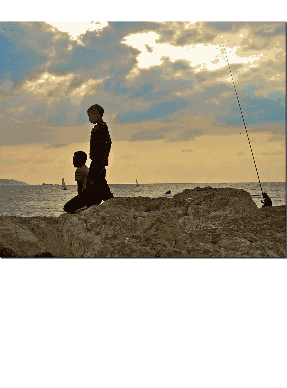 Akko fishing at sunset.