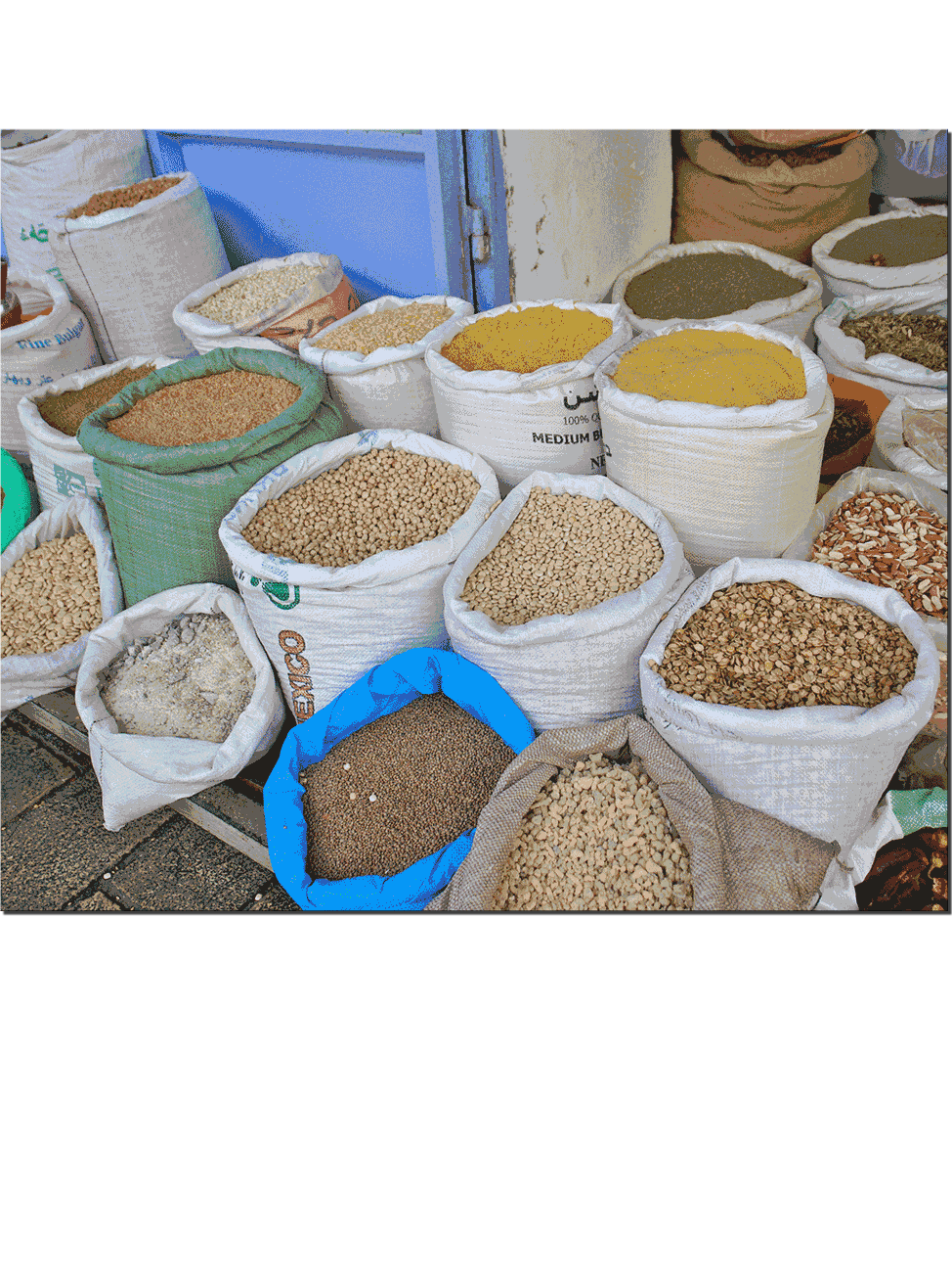 Akko bags of goods at marketplace.
